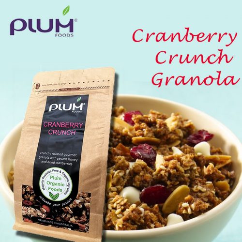 Cranberry Crunch Organic Granola, a healthy breakfast cereal by Plum Foods, is On Sale as a monthly Special right now at $8 per large 1kg…