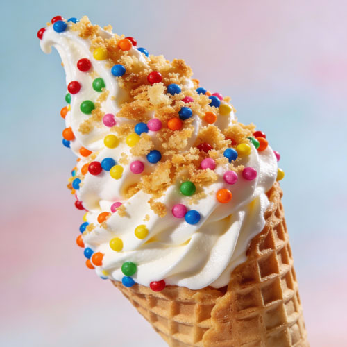 100s and 1000s are essential because they deliver instant visual recognition and textural contrast in a single ingredient. A generous coat of 100s and 1000s transforms a white dessert into an instant mood-lifter. As a soft serve topping, those tiny rainbow spheres trigger recognition before the first bite, and customers know this flavour before tasting it.